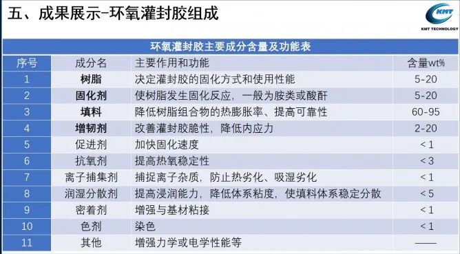 报告指出,通过材料结构和组成优化,设计制备出可以满足现有SiC功率器件灌封用的环氧树脂灌封胶。SiC功率器件用的环氧灌封胶的耐热性和耐高低温冲击等性能,有待进一步提升。