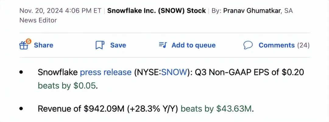 Snowflake第三季度业绩强劲,超出分析师预期,股价随之飙升,具体如下: