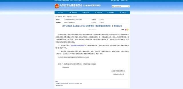 据中国青年报官微,11月25日,山东省卫生健康委员会发布关于公开征求《山东省人口与计划生育条例(修正草案征求意见稿)》意见的公告。山东省卫生健康委会同有关部门积极推进延长婚假工作,对《山东省人口与计划生育条例》提出了修正意见。