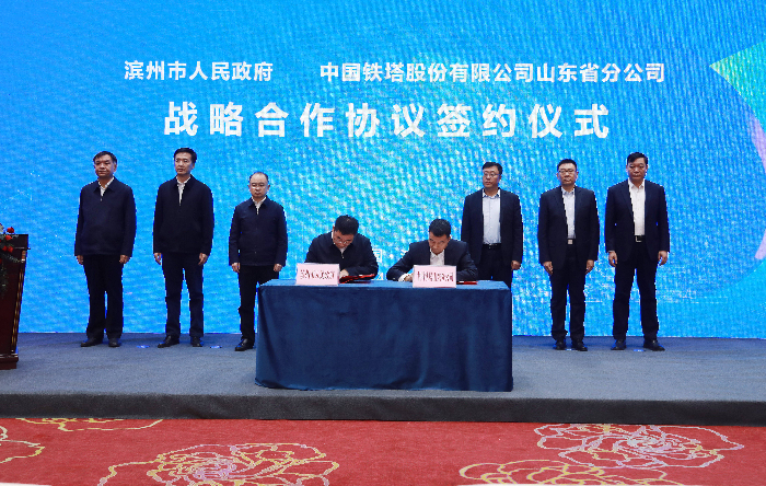 李春田介绍了滨州市经济社会发展情况。他表示,近年来,滨州创新开展数字强市十大行动,聚力打造“城市大脑”智能中枢,重点培育新能源及装备制造、无人机等新兴产业、未来产业,连续两年成功入围数字城市百强榜。山东铁塔是信息通信基础设施建设的“国家队”和“主力军”,全面落实5G深度覆盖提升工程,推动铁塔服务于社会治理多个领域。双方战略合作,是相互赋能、互惠互利的共赢之举,必将助推数字强市建设再启程、智慧管理服务再扩面、产业融合发展再升级。希望双方以此次签约为契机,建立多层次、宽领域的沟通机制,全力推动合作事项尽快落地生根、开花结果,为品质滨州建设赋能加力。