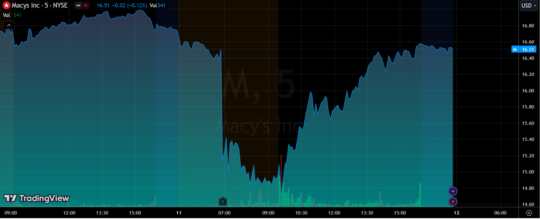 梅西百货 自从上次拒绝了要约团的报价之后,股价大概跌了20-30%左右。