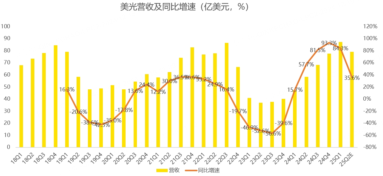 从一季报来看,美光营收87.1亿,符合预期,同比增长84.3%: