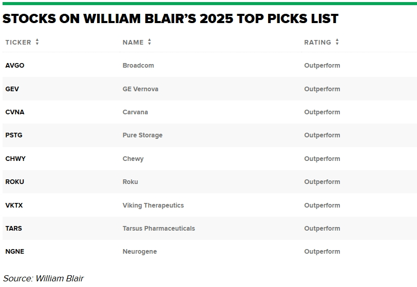 随着交易年接近尾声,投资银行William Blair建议投资者关注一些可能在2025年迎来大幅增长的股票。