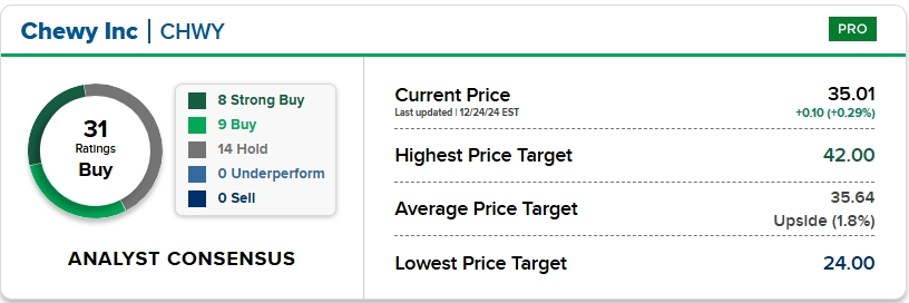 “我们预计,行业复苏以及线上迁移的持续正常化将在2025年带来显著的上涨空间,这两个因素目前都处于早期阶段,”William Blair表示。“随着线上迁移的正常化,我们相信Chewy的活跃客户增长将加速。”