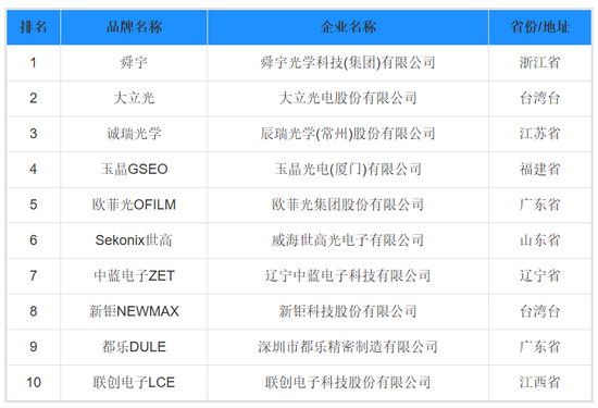 宇博智业产业研究院发布的2023年手机摄像头十大品牌排行榜显示,中蓝电子排行业第七,在它前面的是舜宇、大立光等行业巨头。