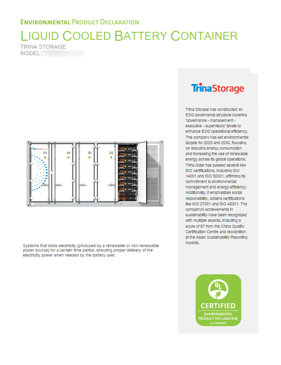 天合储能创新EPD报告 以20年产品生命周期视角引领绿色发展