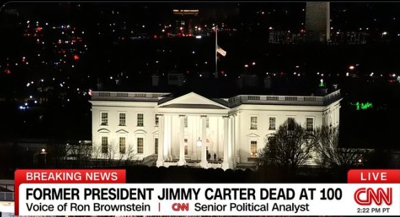 (白宫降下半旗纪念前总统卡特,来源:CNN)