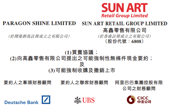 公告指,买方同意购买阿里巴巴子公司阿里巴巴待售股份(占公告日期已发行高鑫零售股份总数约73.66%)以及向NewRetail 购买4.8亿股高鑫零售股份占公告日期已发行高鑫零售股份总数约 5.04%,合计占高鑫零售已发行股份总数约78.7%