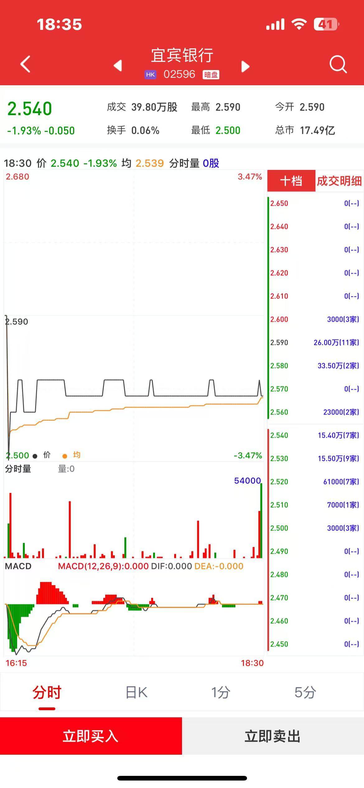 宜宾银行(02596)将于1月13日(周一)在香港挂牌。截至收盘,利弗莫尔证券暗盘交易显示报价2.54港元,较招股价2.59港元下跌1.93%,每手1000股,不计手续费,每手亏50港元。