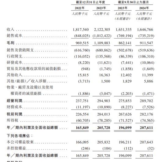 招股书截图毛利率方面,2022年、2023年、2024年前九个月,公司整体毛利率分别为53.3%、52.3%、55.4%。