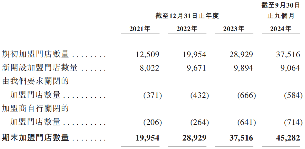 查阅招股书,标点财经、投资时间网研究员注意到,在2021年—2023年及2024年1—9月(下称报告期),该公司营收及利润持续增长,这一状况也伴随着近两年公司多款饮品的涨价。该公司门店网络中99%的门店为加盟,这也成为公司食品卫生安全及品控问题频发的关键因素。