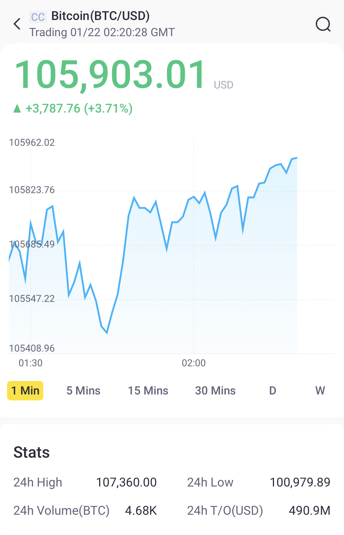 Bitcoin and other digital assets started Tuesday lower after Trump's first day in office failed to include any actions on cryptocurrencies. As of Tuesday afternoon, however, Bitcoin was up about 3.7% in the past 24 hours to about $106,000, near its record high.