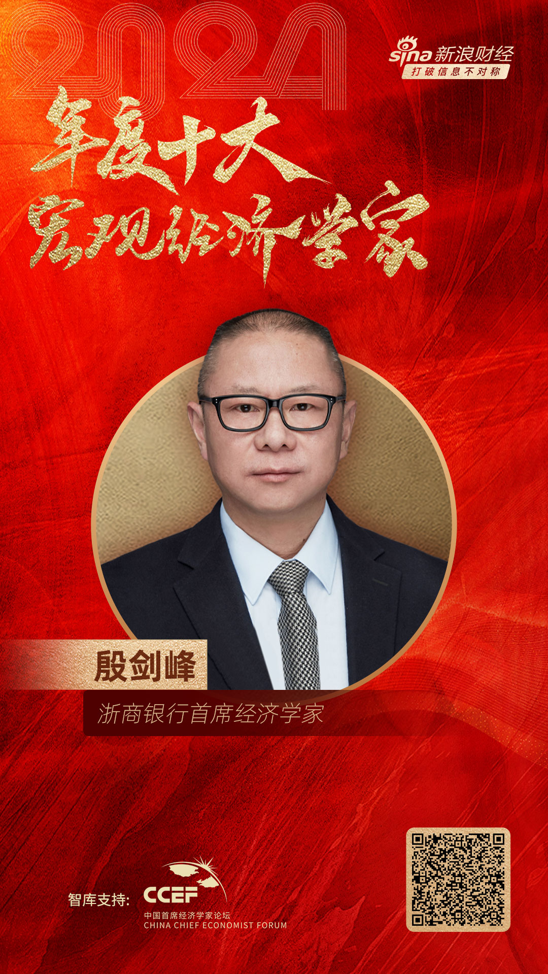 浙商银行首席经济学家、对外经济贸易大学中国金融学院教授、国家金融与发展实验室副主任殷剑峰荣膺“2024年度十大宏观经济学家”!