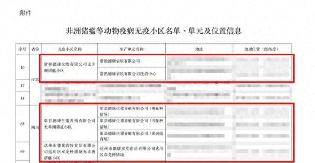 日前,农业农村部发布了《中华人民共和国农业农村部公告第866号》,公示了新一批通过国家评估的68个非洲猪瘟无疫小区。德康集团旗下常熟德康农牧有限公司、渠县德康生猪养殖有限公司、达州德康农牧食品有限公司位列其中。