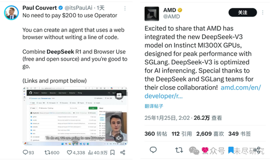 AMD反应很敏锐,已经把DeepSeek-V3集成到了Instinct MI300X GPU上。