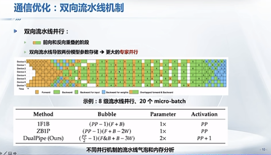DeepSeek并行训练方面,技术报告里有一个轻量级训练框架。下图右边是从网上找的一个示意图。具体训练实验平台没有公布,但从它公开的一些数据,它是一个通过InfiniBand连接起来的GPU集群,然后在每个节点内通过NVLink连接起GPU。GPU之间的带宽是160GB,节点之间的带宽是50GB。这是一个网络拓扑情况。