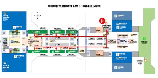 市域铁路上客点位于B1通道东侧,由市域铁路商业附近楼梯上至地面1层,或由直梯至地面2层再经扶梯至地面1层后可达。该上客点距离铁路北一或南一出站口约500米,通道内将设置多处标志标识指引旅客前往。