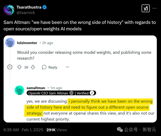 居然能逼得OpenAI CEO奥特曼承认:‘我们在开源/开放权重AI模型方面,一直站在了历史的错误一边。’