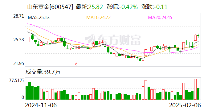 山东黄金大宗交易成交7.80万股 成交额201.40万元