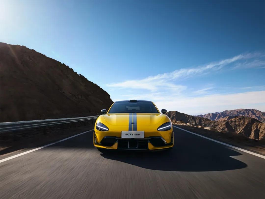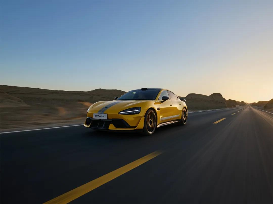 外观上,作为Ultra版,前包围两侧采用与车身同色的U形风刀,前包围中间位置搭配前铲和菱形网格结构进风口。新车针对前车标、前大灯采用黑化处理,并在前机舱盖、后备厢盖中间位置加入银色涂装。并且车身多处更是增加了空气动力学套件,全车17处碳纤维材质,整体的空气动力学设计能提供最大285kg的下压力,车顶保留有激光雷达,整车采用黄色涂装。