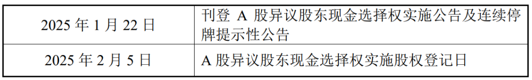 经向上海证券交易所申请,公司A股股票将自 2025年2月6日(即A股异议股东现金选择权申报日)开市起连续停牌,此后进入现金选择权行权申报、清算交收阶段,不再交易。公司将于A股现金选择权申报截止日的次一交易日向上海证券交易所申请终止上市,公司 A 股股票继续停牌直至终止上市。