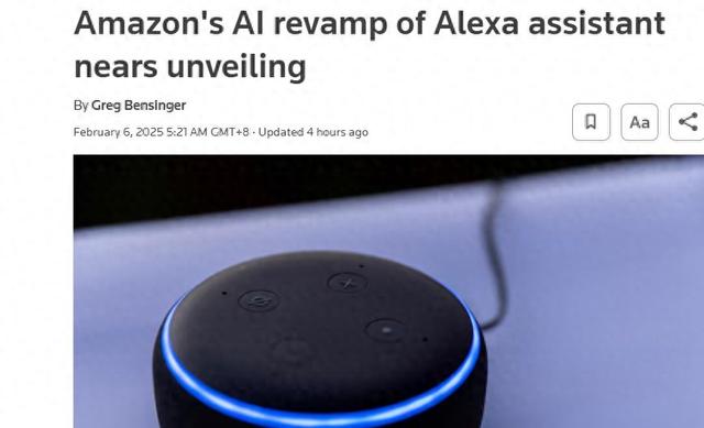 【环球网科技综合报道】2025年2月6日,据路透社援引三位知情人士消息,亚马逊即将发布其期待已久且曾被推迟的生成式人工智能Alexa语音服务,并计划于本月晚些时候举行新闻发布会来预览该服务。