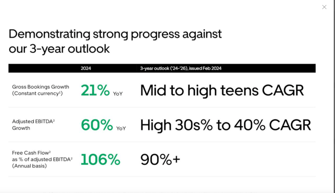 2024 年总预订量增长 21%,调整后 EBITDA 增长高达 60%。