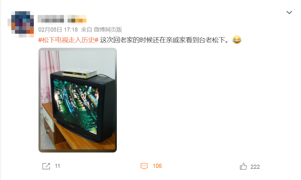 有不少网友表示“小时候家里的第一台彩色电视就是松下”“爸妈结婚的时候姥爷送了他们一台松下电视,到现在30年了还能打开,颜色也很棒”“这次过年回老家还在亲戚家看到台老松下”。