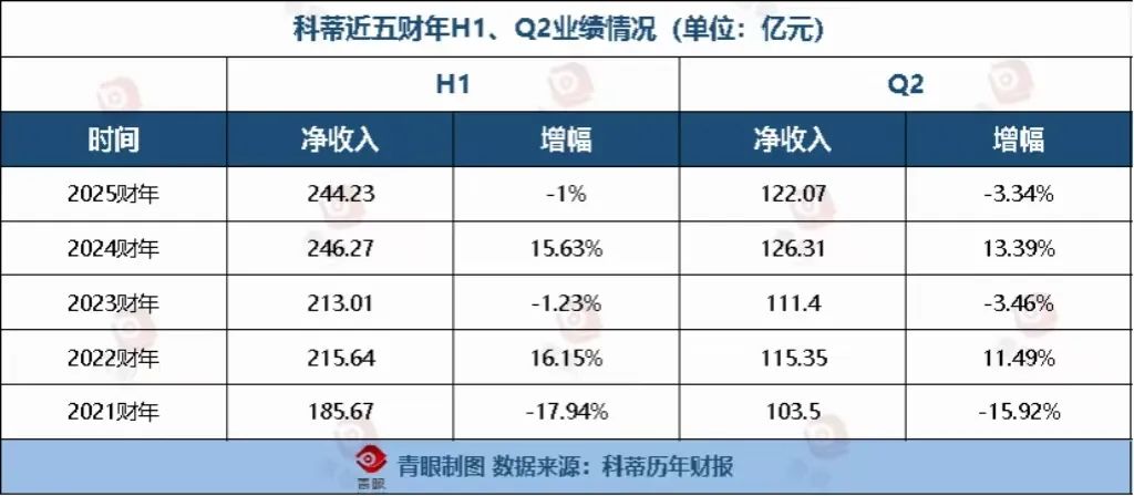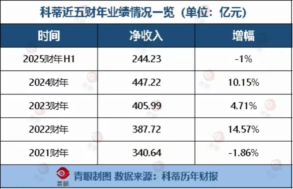 不过,在2025财年H1,科蒂的净收入则录得了1%的轻微下滑。也就是说,该集团在实现连续三年净收入增长后,开始出现了下滑势态。
