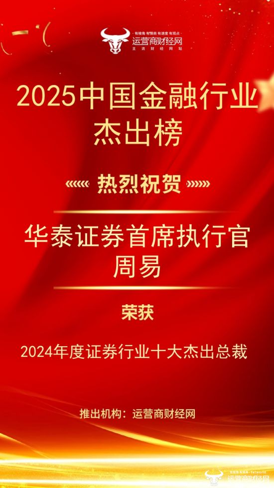 日前,运营商财经网倾力打造的“2024年度证券行业十大杰出总裁”名单公布,华泰证券首席执行官周易榜上有名。