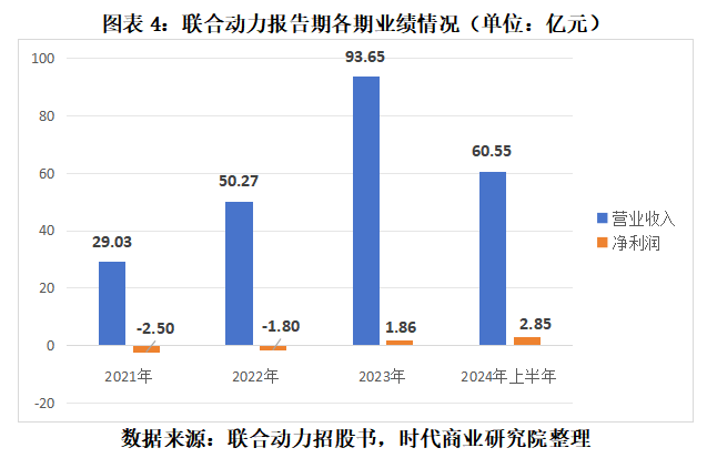 报告期各期,联合动力实现营业收入分别为29.03亿元、50.27亿元、93.65亿元和60.55亿元,净利润分别为-2.50亿元、-1.80亿元、1.86亿元、2.85亿元。