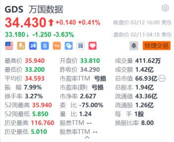 万国数据(GDS.US)盘前跌3.6%,报33.18美元。该股近三个交易日已累计上涨超26%。消息面上,万国数据公告称,公司已得悉有媒体报道猜测DayOne正在考虑进行首次公开招股。公司对此澄清,DayOne并无进行首次公开招股的具体或最终计划。(格隆汇)