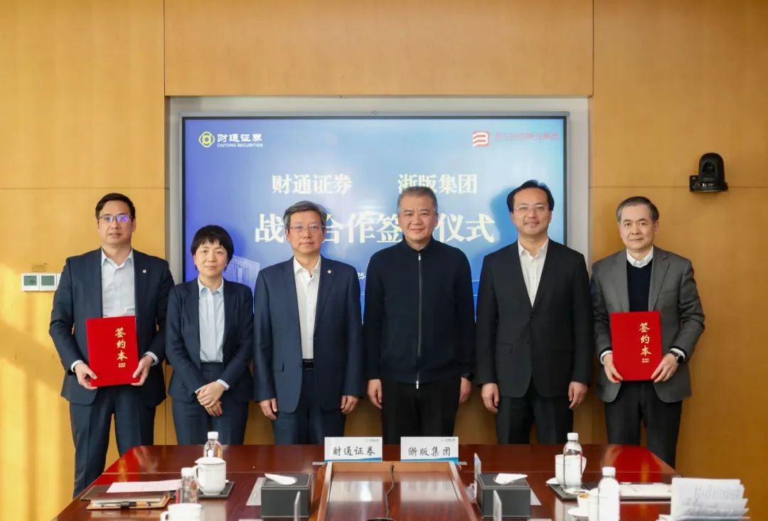 2月13日下午,财通证券与浙江出版联合集团(以下简称“浙版集团”)签署战略合作协议。财通证券党委书记、董事长章启诚,副总经理吴佳伟,浙版集团董事长、党委书记程为民,浙版集团总经理、总编辑、党委副书记芮宏出席签约仪式,财通证券党委委员、监事会主席叶笃银与浙版集团董事、党委委员张建江代表双方签署战略合作协议。财通证券、浙版集团相关部门负责人参加座谈。