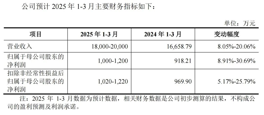 常友科技招股书称,预计公司2025年一季度实现净利润1000万元至1200万元,同比增长8.91%至30.69%。