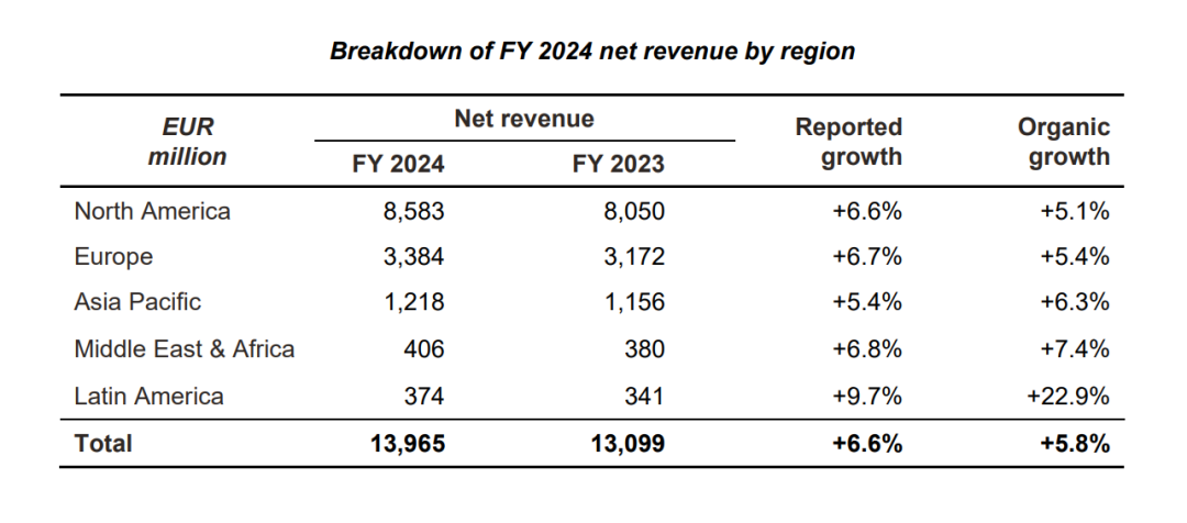 按地域划分,阳狮集团2024年亚太地区有机增长达6.3%,高于北美与欧洲市场。财报中还特别提到尽管全年宏观经济条件困难,但仍在中国市场实现了6.4%的有机增长,高于亚太平均水平。