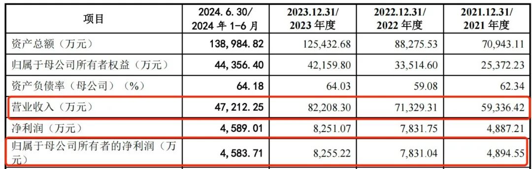 背靠这些豪车,众捷汽车近年来的业绩一路走高。2021年至2024年上半年(以下简称“报告期”),公司营业收入分别为5.93亿元、7.13亿元、8.22亿元和4.72亿元;归母净利润分别为4894.55万元、7831.04万元、8255.22万元和4583.71万元。