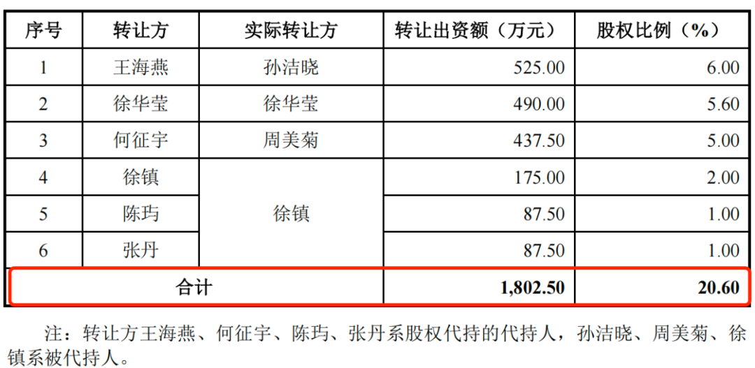招股书表示,由于孙文伟自2012年负责公司生产经营,带领公司实现跨越式发展,为奖励并鼓励他未来继续带领公司发展,主要股东孙洁晓、徐华莹、周美菊、徐镇无偿向孙文伟转让了20.6%股权。此次转让后,孙文伟的持股比例增长至34.2%。