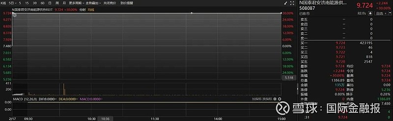 2月17日,国泰君安济南能源供热REIT首日上市,全天强势封住30%涨停板。截至当日收盘,国泰君安济南能源供热REIT成交金额达135万元,换手率为0.28%,延续近期公募REITs市场火爆行情。