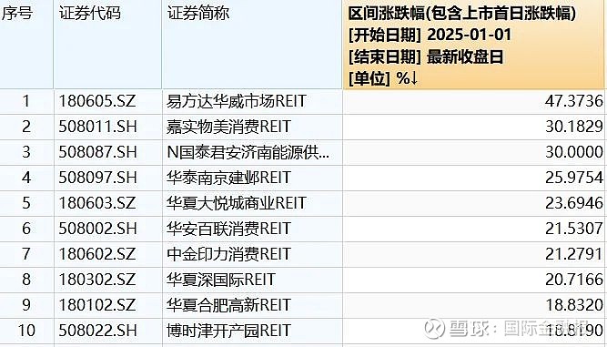 同时,据Wind数据,在全市场已上市的60余只公募REITs产品中,2025年至今区间涨幅超20%的REITs产品共计8只。其中,易方达华威市场REIT年内涨幅最高,为47.37%。