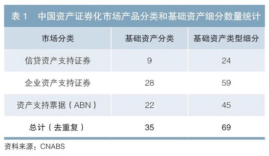 从实践来看,我国资产证券化市场已经涵盖信贷资产、企业资产等多种基础资产类型,市场在不断尝试将各种流动性较低的资产转化为可交易证券,以满足不同投资者的需求。据资产证券化分析网(CNABS)统计,截至2024年末,我国资产证券化市场已发行的基础资产类型多达 35种,包括企业贷款、个人汽车贷款、住房抵押贷款、不良资产重组、金融租赁、个人消费贷款、住房公积金、类不动产投资信托基金(类REITs)、融资租赁、应收账款、委托贷款、保理融资、商业地产抵押贷款支持证券(CMBS)/商业地产抵押贷款支持票据(CMBN)、供应链融资、小微贷款等;基础资产细分数量多达 69 个,几乎涵盖各类基础资产,远多于海外资产证券化市场基础资产种类(见表1)。然而,在实践中,我国只有两类资产相对容易获得融资:一是主体类,如大型企业的债权、股权;二是大宗商品类,其特点是标准化、规模大。中小企业和碎片化的资产都面临着融资难的问题。