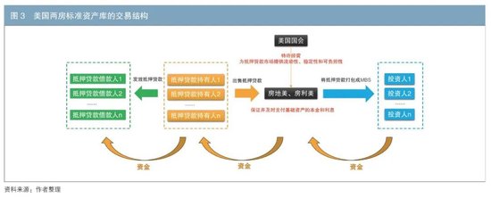 标准资产库在海外市场并非新鲜事物。被金融业所熟知的房利美(Fannie Mae)、房地美(Freddie Mac)(以下简称“两房”)等金融机构,就采用了典型的标准资产库做法(见图3)。早期美国机构住房抵押贷款支持证券(Agency RMBS)的发行方,以及美国非机构住房抵押贷款支持证券(Nonagency RMBS)和贷款担保债券(CLO)的发行方,都利用专业机构和团队,针对特定资产类型形成标准资产库,购买贷款并进行打包出售,从而为房贷资金提供支持,同时提升二级抵押贷款市场的流动性,并有助于降低抵押贷款借款人的利率。