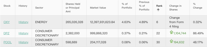 此外,在近期披露的2024年四季度持仓情况中,伯克希尔也有多笔调仓动作,包括建仓酒业公司星座品牌,增持达美乐比萨、游泳池用品公司Pool Corp等消费股,以及增持西方石油,减持美国银行等股票。