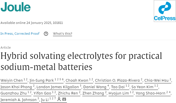 近期,美国麻省理工大学李巨教授团队在Joule上重磅发文:“Hybrid solvating electrolytes for practical sodium-metal batteries”。钠元素的天然丰度高且成本低廉,钠金属电池作为下一代储能技术显示出巨大应用潜力,但传统电解质与高活性钠金属负极以及正极的不相容性限制了其性能发挥。本工作报道了一种新型混合溶剂化电解质(HSEs),由钠盐的强溶剂和弱溶剂共同组成,实现了电解质关键物理和化学性质的调节。研究发现HSEs表现出很强的超混合规则效应,可以在低极化和高氧化还原稳定性之间取得很好的平衡,HSE可以在3.0 mA cm-2的电压下维持高度可逆的钠金属循环,并且能够匹配高达4.0 V的钠正极上实现非常稳定的循环性能。这项工作为钠金属电池电解液设计提供了一个指导原则,对发展实用化钠金属电池成具有重要意义。