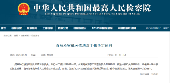 2月21日金融一线消息,据最高人民检察院消息,招商银行股份有限公司原党委委员、副行长丁伟涉嫌受贿一案,由青海省海东市监察委员会调查终结,移送检察机关审查起诉。经最高人民检察院指定管辖,由青海省海东市人民检察院审查起诉。日前,海东市人民检察院依法以涉嫌受贿罪对丁伟作出逮捕决定。该案正在进一步办理中。