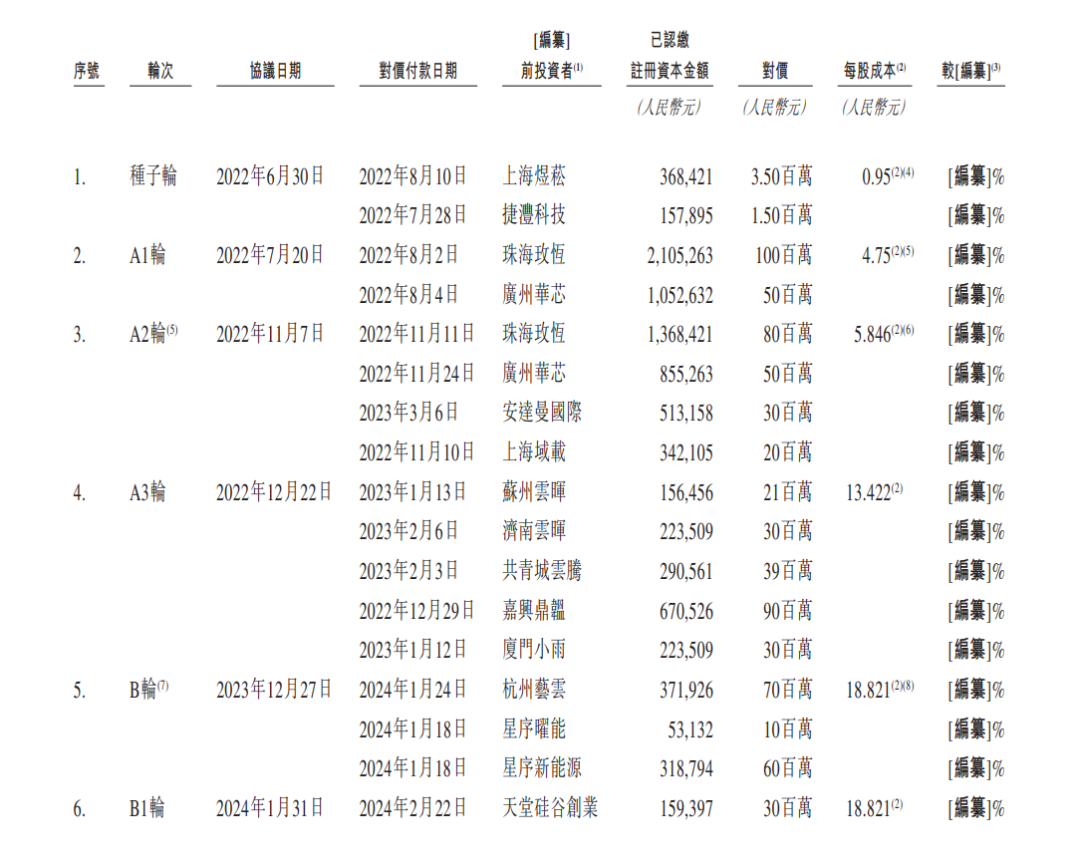 在明星创业者和极具前景的商业思路的加持下,思格新能源在资本市场获得众多知名机构的青睐。招股书显示,思格新能源先后完成六轮融资,包括2022年6月的500万元种子轮融资;2022年7月至12月进行的A1至A3轮融资,累计融资5.4亿元,这轮融资后,思格新能源估值超30亿元,而此时,许映童创业还不满一年;2023年12月,思格新能源进行了1.4亿元B轮融资,2024年1月进行了3000万元B1轮融资。