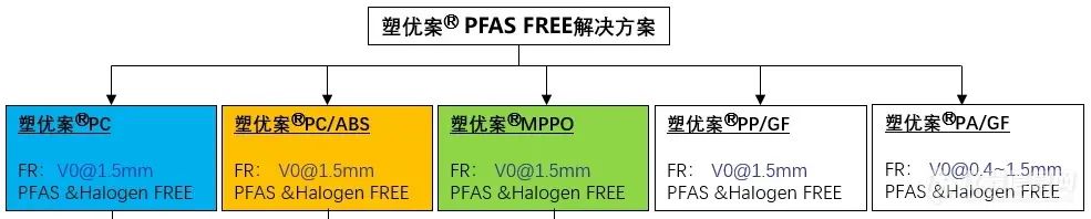 金发推出了几款无氟阻燃材料解决方案:PPE-PFAS-Free、无PFAS阻燃PC/PPO材料。