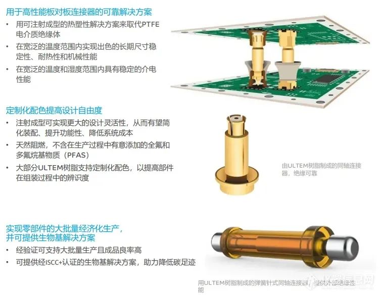 ULTEM树脂是一种无卤素材料,且不含在生产过程中有意添加的全氟和多氟烷基物质 (PFAS),为高性能板对板连接器提供潜在的材料解决方案。