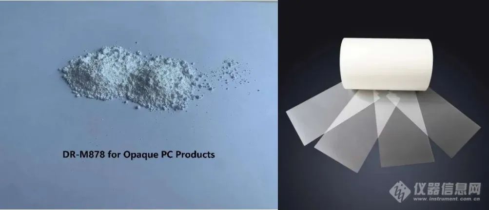 图.阻燃剂DR-M878和白色阻燃PC膜的产品实物照片