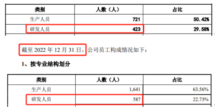 但令人不解的是,截至2024年9月30日,宏工科技研发人员为423人。而上会稿显示,截至2022年12月31日,宏工科技研发人员为587人,减少了27.94%。一边是募资新建研发中心,一边是研发人员减少,这中间的原由是什么?