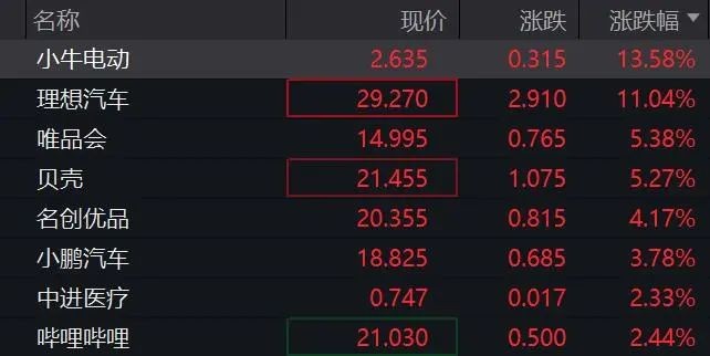 热门中概股走势分化,小牛电动一度涨近16%,现涨13.58%;理想汽车大涨超11%,小鹏汽车涨近4%。